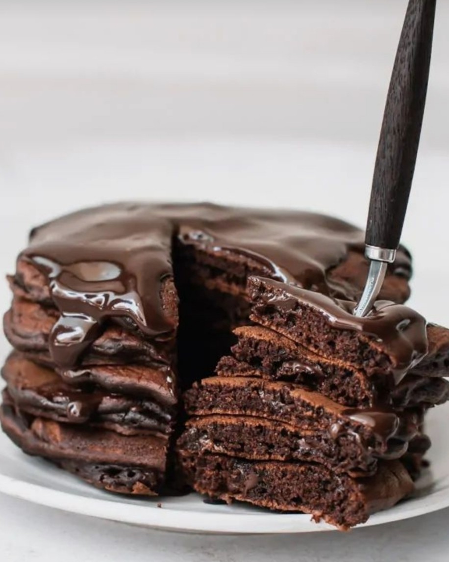 Fresh Eggless Chocolate Pancakes with Hot Chocolate