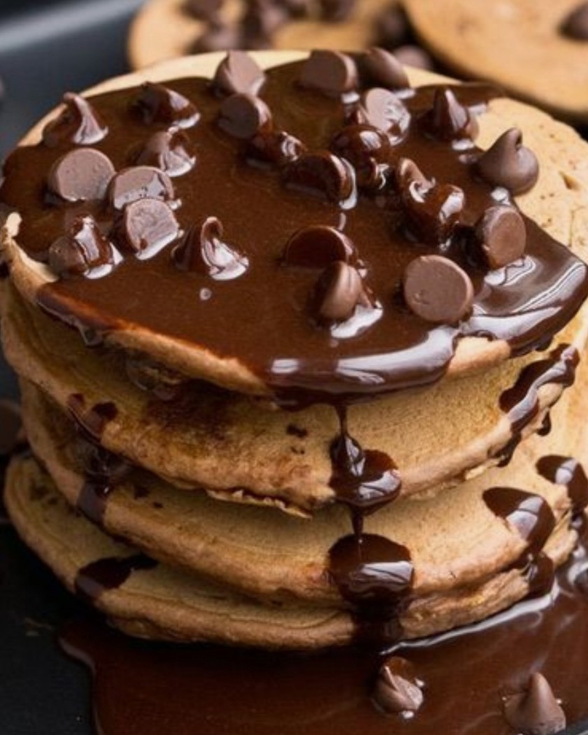 Dark Chocolate Pancakes with Hot Chocolate and Chocochips